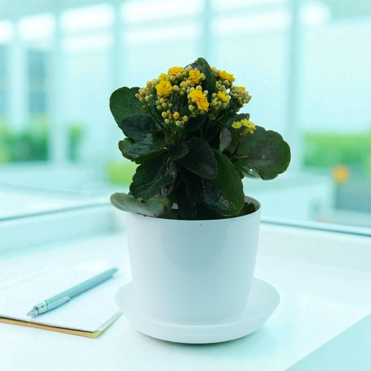 This cheerful succulent boasts clusters of golden-yellow, bell-shaped blooms that brighten any space year-round. With its glossy leaves and long-lasting flowers, it’s a low-maintenance plant perfect for desks, patios, or sunny windows.